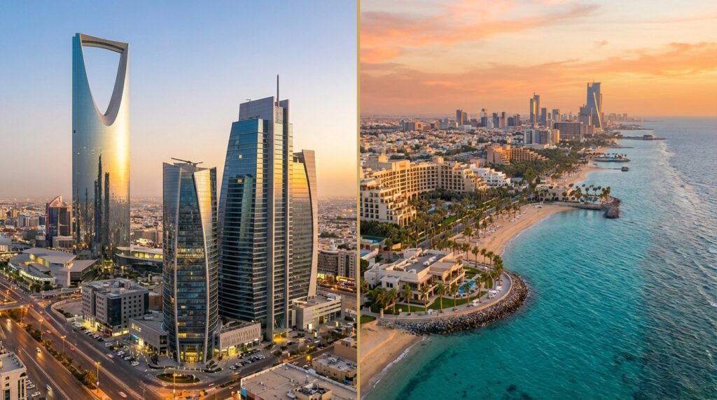 サウジアラビア不動産投資でリヤドとジェッダのどちらを選ぶべきか?首都リヤドは政治・経済の中心で年4.5%の人口増加、商業都市ジェッダは国際ハブで観光業が急成長。投資目的別のおすすめエリア、物件価格、期待利回りを徹底比較。